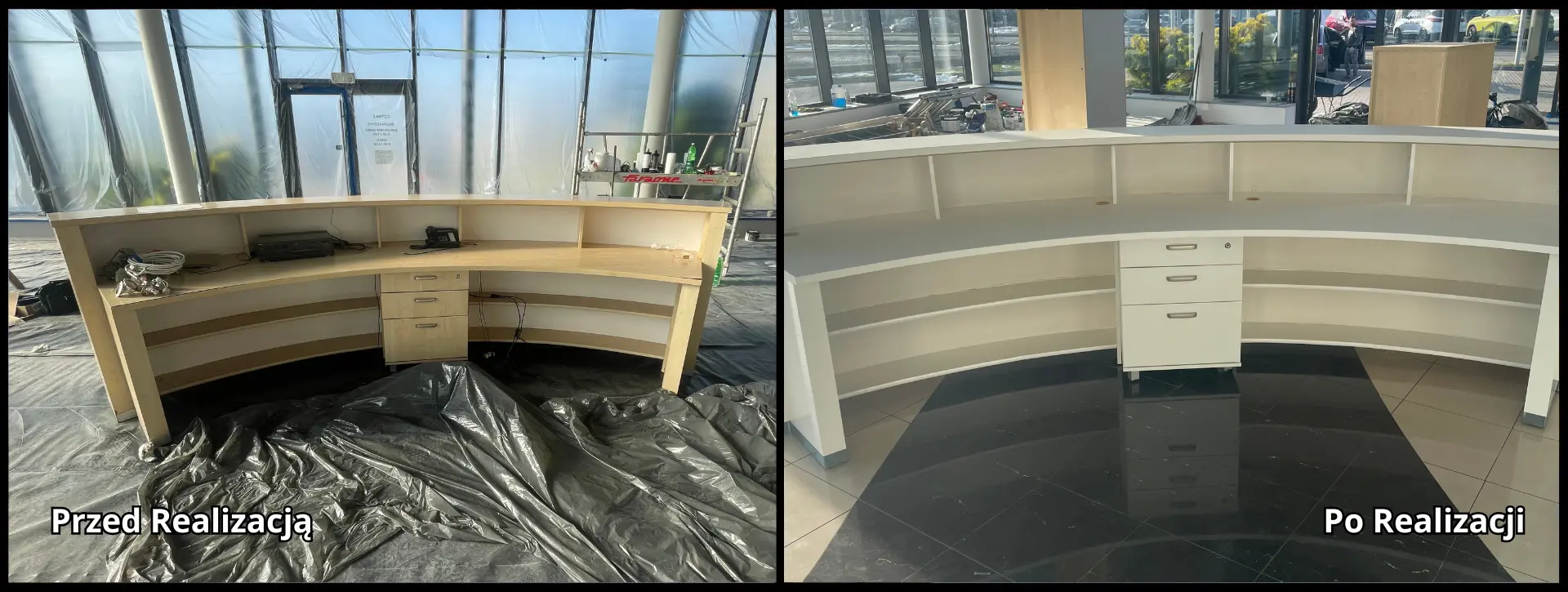 GALERIA – Oklejanie recepcji folią przed i po